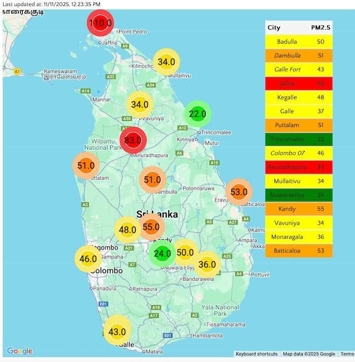 IQAir, World’s Air Pollution, AirNow App, Accu weather போன்ற சர்வதேச வலைத்தளங்களில் இருந்தும் இலங்கையின் AQ.LK, https://www.nbro.gov.lk/ வலைத்தளங்களில் இருந்தும் realtime முறையில் நாம் சுவாசிக்கும் காற்று எவ்வளவு மாசுபட்டுள்ளது என்பதினை அறிந்து கொள்ளலாம்