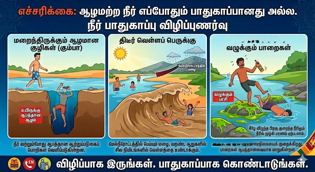 இலங்கையின் 2026 புத்தாண்டு கால உயிரிழப்புகள், நீரின் ஆழம் மட்டுமே ஆபத்திற்கான அளவுகோல் அல்ல என்பதை நமக்கு உணர்த்துகின்றன. மறைந்திருக்கும் புவியியல் குழிகள், திடீர் நீரோட்டங்கள் மற்றும் கொண்டாட்ட மனநிலையால் ஏற்படும் கவனக்குறைவு ஆகியவையே இத்தகைய மரணங்களுக்குக் காரணமாகின்றன. இது குறித்து பொதுமக்களிடையே விழிப்புணர்வை ஏற்படுத்துவதும், குறிப்பாக நீர் மட்டம் குறைவாக இருக்கும் போது ஆற்றில் மறைந்திருக்கும் ஆபத்துக்களை விளக்குவதும் எதிர்கால உயிரிழப்புகளைத் தடுக்க அவசியமாகும்.